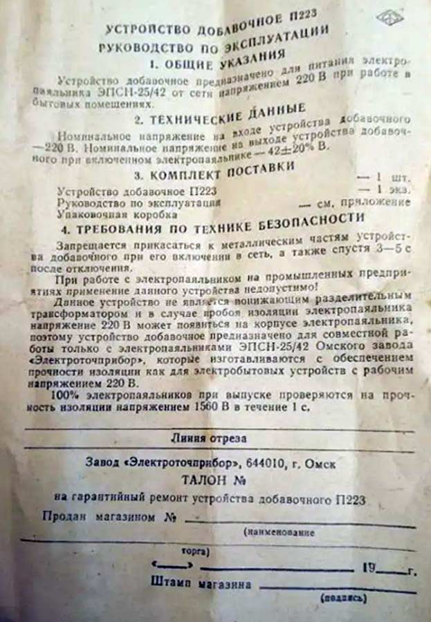 устройства добавочного при включенном электропаяльнике 42 В. Цена электропаяльника