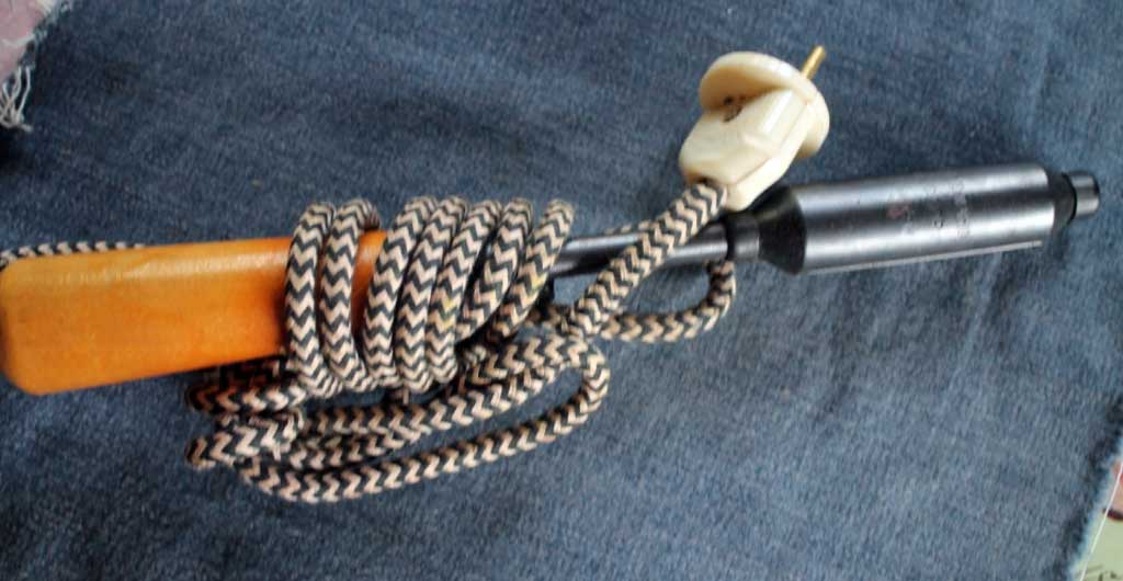 Электропаяльник "ЭП-65/36" выпускался возможно с 1972 года, возможно, на экспорт. Рабочее напряжение 36 В. Мощность 65 Вт. Материалы Владимира Степановича Шумского, Москва.
