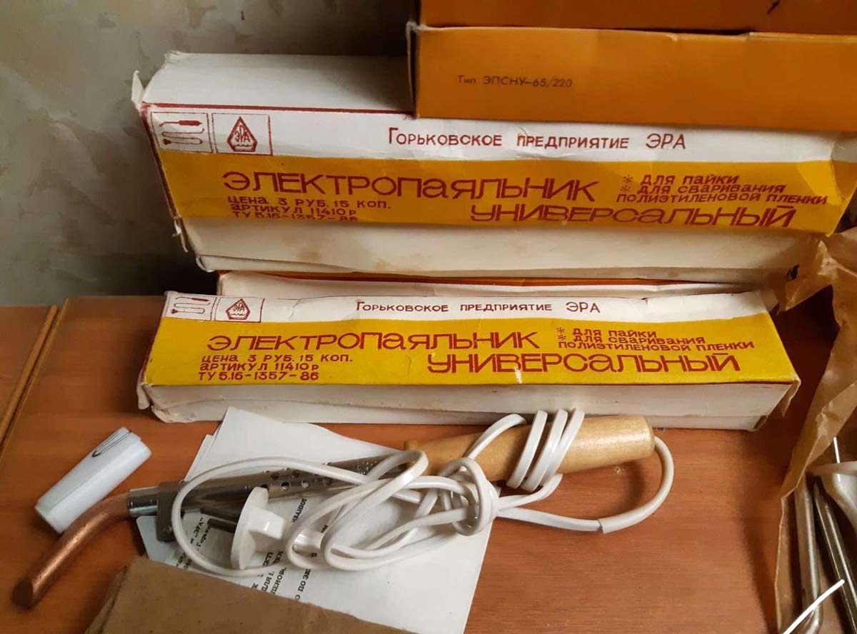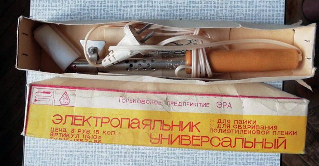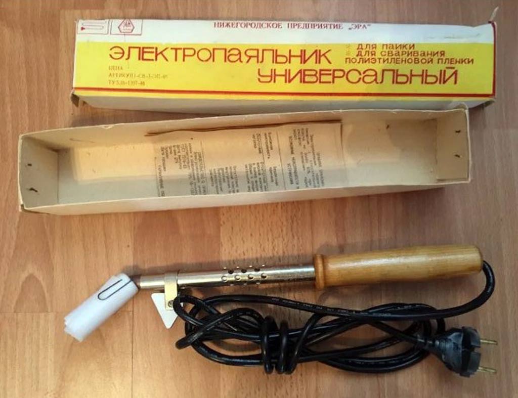 Мощность электропаяльника 65 Вт. Рабочее напряжение 220 В постоянного или