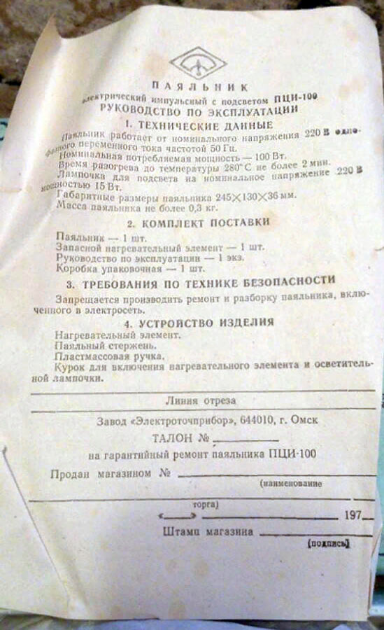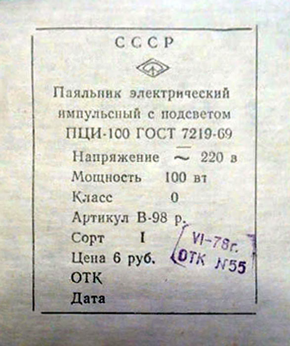 импульсный паяльник с подсветом "ПЦИ-100" выпускался с 1970 года Омским