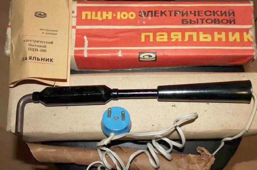 Электропаяльник бытовой "ПЦН-100/220" выпускался возможно с 1970 года Донецким заводом "Продмаш". Изготавливался по ГОСТ 7219-69. Напряжение 220 В. Мощность 100 Вт.