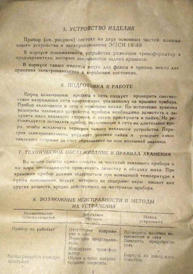 16 Вт и рабочим напряжением 40 В. Электропаяльник питается от понижающего