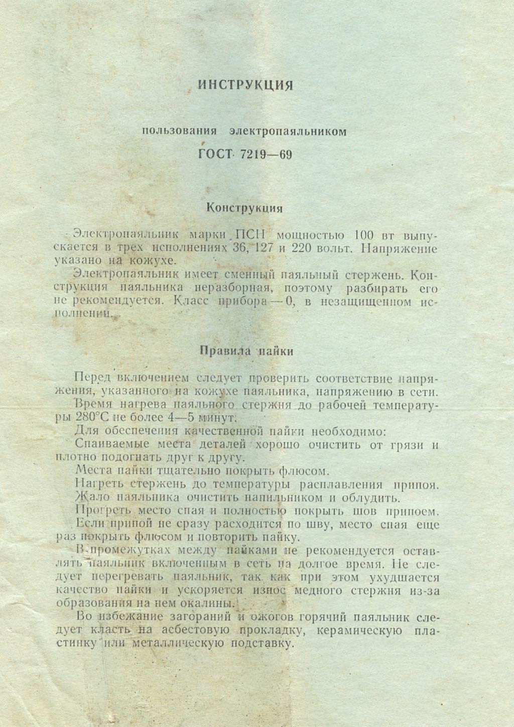 изготавливался на рабочие напряжения 36, 127 или 220 В. Паяльник выпускался