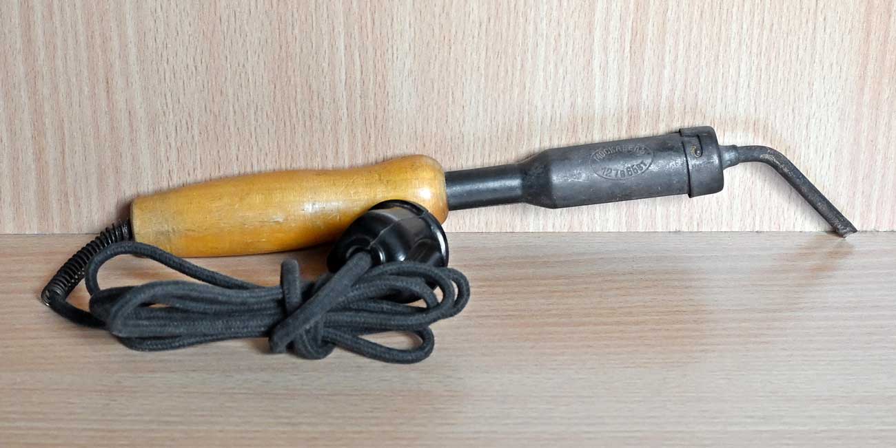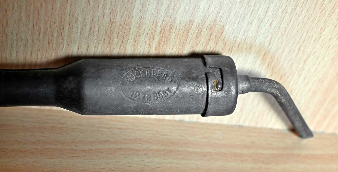 Электропаяльник ЭП "65/127" производился возможно с 1960 года Московским заводом "Москабель". Напряжение питания 127 В. Рабочая мощность 65 Вт. Фото Вячеслава Булочникова, Мытищи.