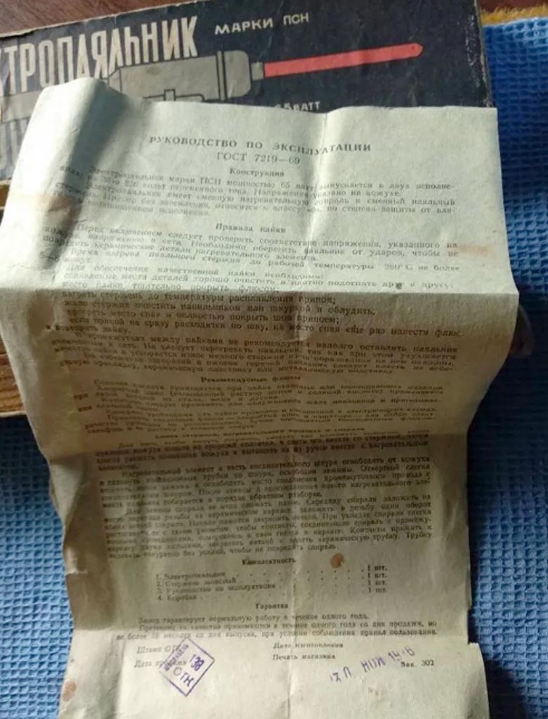 и Московским заводом "Москабель". Паяльник выпускали в соответствии с ГОСТ