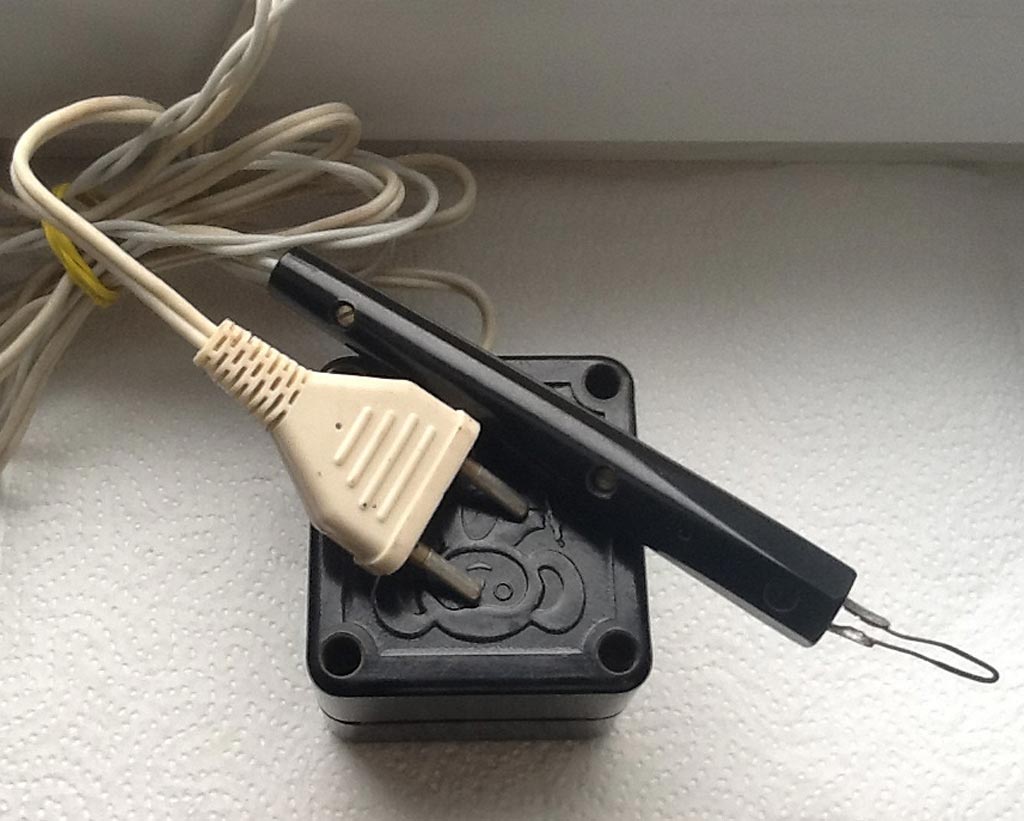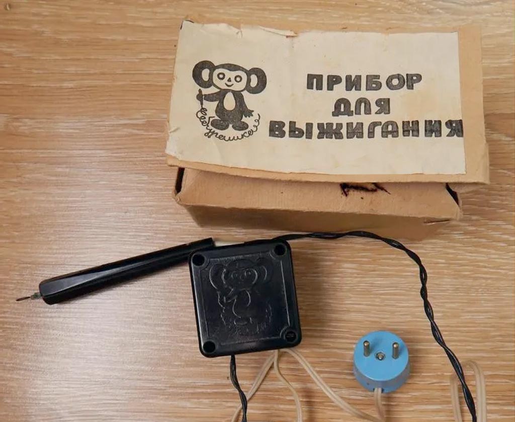 Прибор для выжигания по дереву "Чебурашка" выпускался предположительно с 1969 года Кировским приборостроительным заводом. Прибор предназначен для выжигания рисунков на деревянных поверхностях.