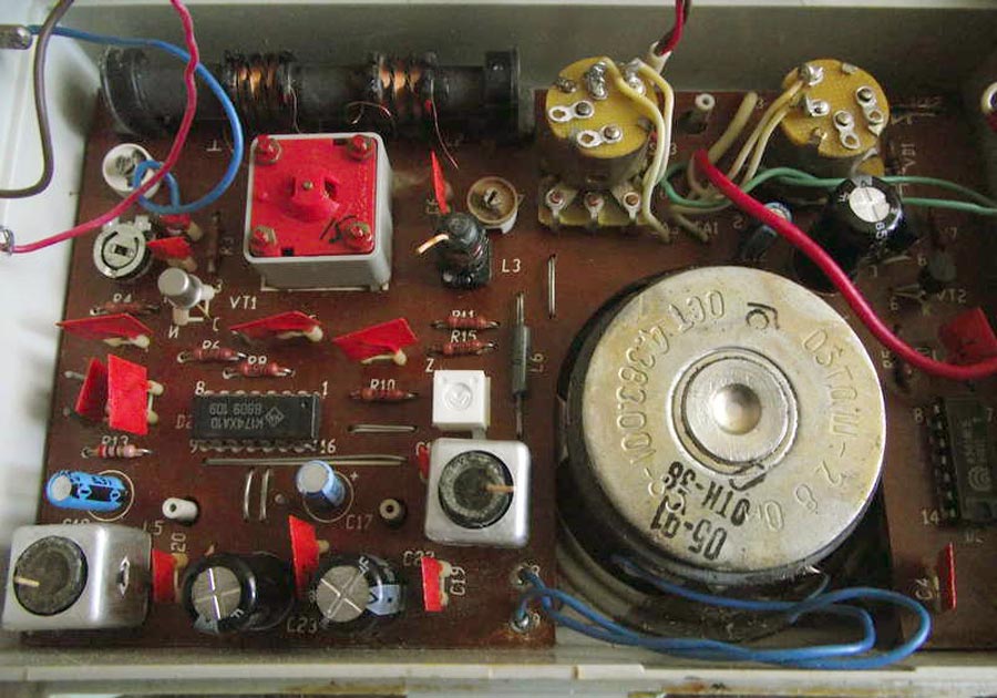 радиоприёмник работает в диапазоне средних волн. Имеется электронный регулятор