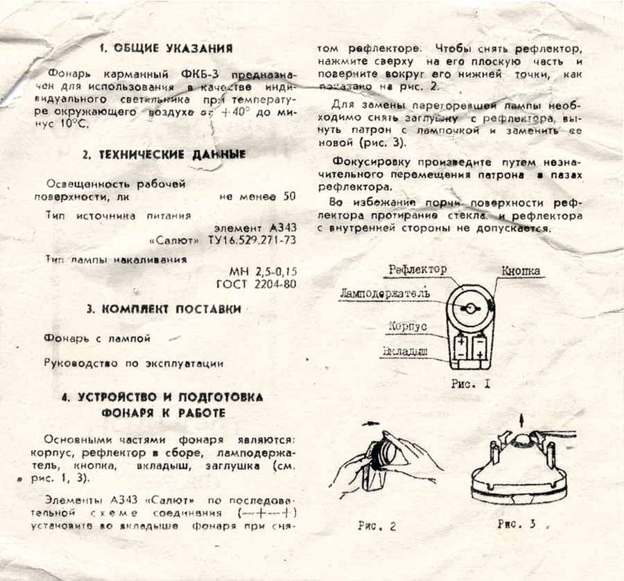 питанием от батареи типа КБС на 4,5 вольта и лампочкой напряжением на 3,5