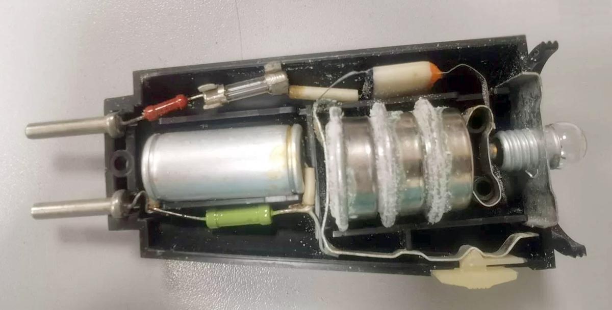 в тёмное время суток. Работает от трёх аккумуляторов "Д-0,25", общим напряжением