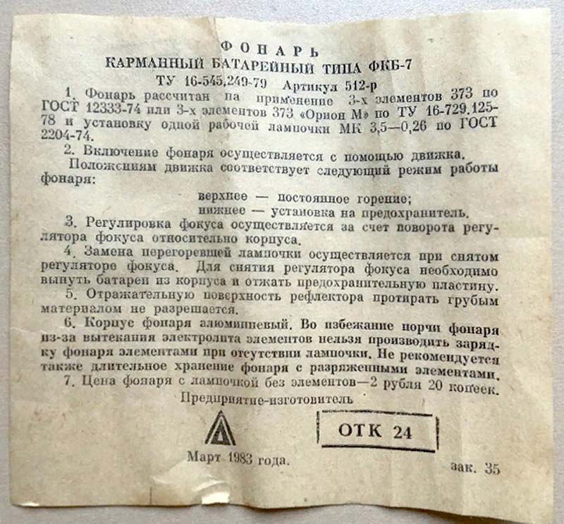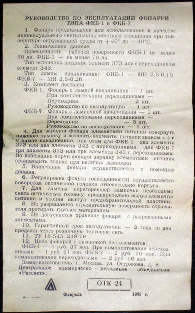Фонарь выпускали двух типов, без переходника на три батареи типа "373"