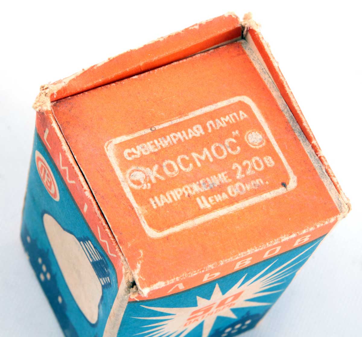 Сувенирная лампа "Космос" выпускалась с 1967 года Львовским электроламповым заводом "Искра". Неоновую лампу "Космос" выпустили к 50-летию СССР. Цена 60 копеек.