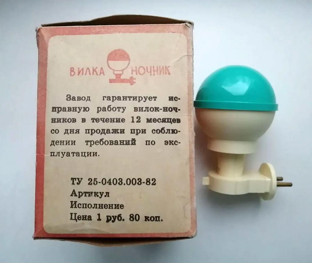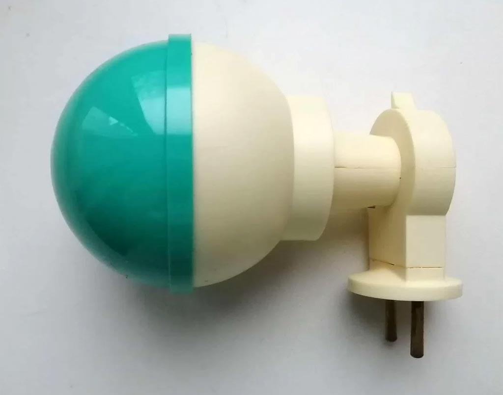 Вилка-ночник "Малышок-3" (ночник) выпускался предположительно с 1969 года. Предназначен для подсветки комнаты в ночное время для ориентирования. Сеть 220 В, 15 Вт.