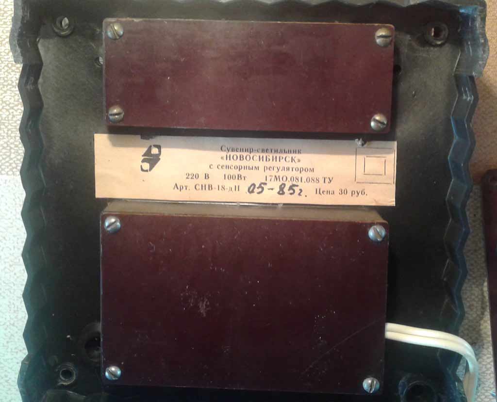 Сувенир-светильник "Новосибирск" с сенсорным регулятором выпускался предположительно с 1985 года. Информации по сувениру-светильнику нет.