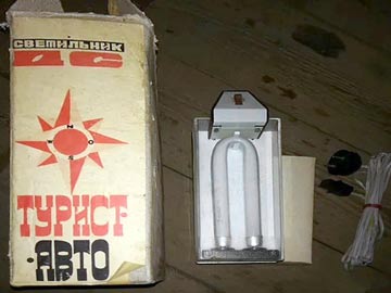 Светильник "Турист-Авто" выпускался с 1980 года. Яркий дневной свет - альтернатива лампам накаливания с желтоватым светом. Лампа "ЛБУ-8".