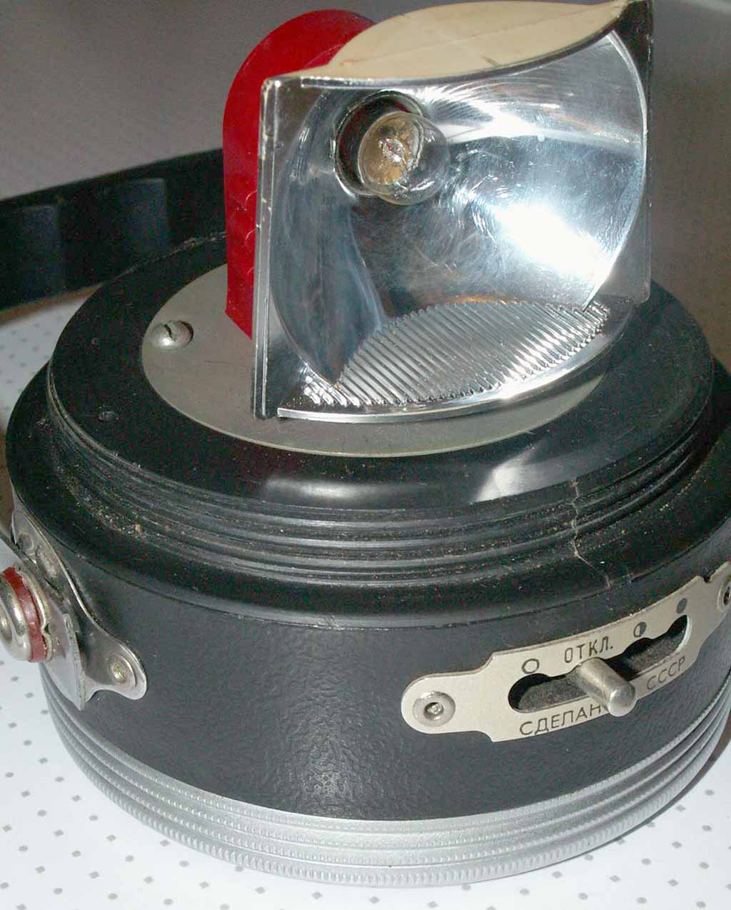 города Львова. Представляет собой батарейный фонарь с 2-мя излучателями: