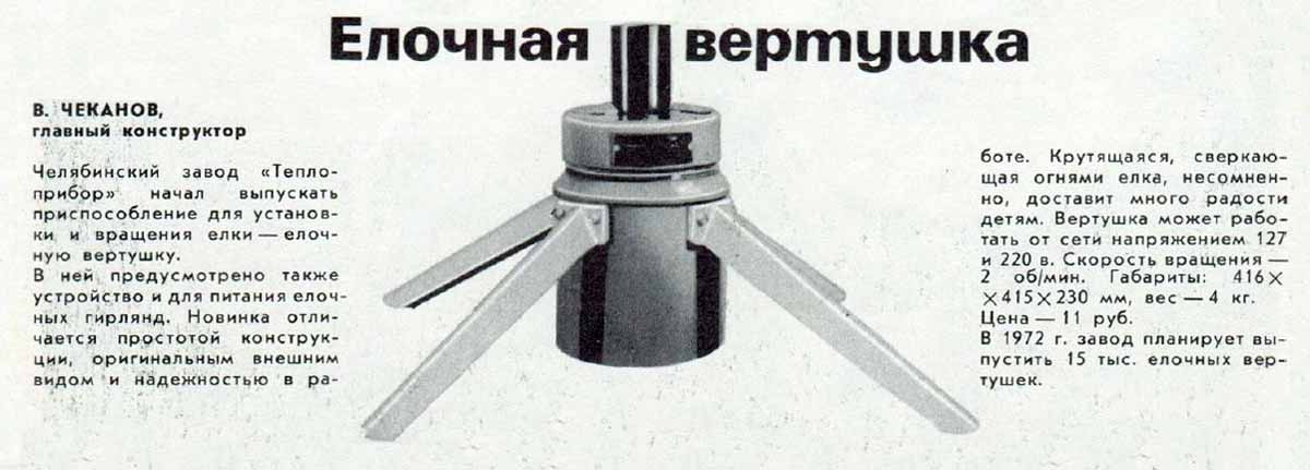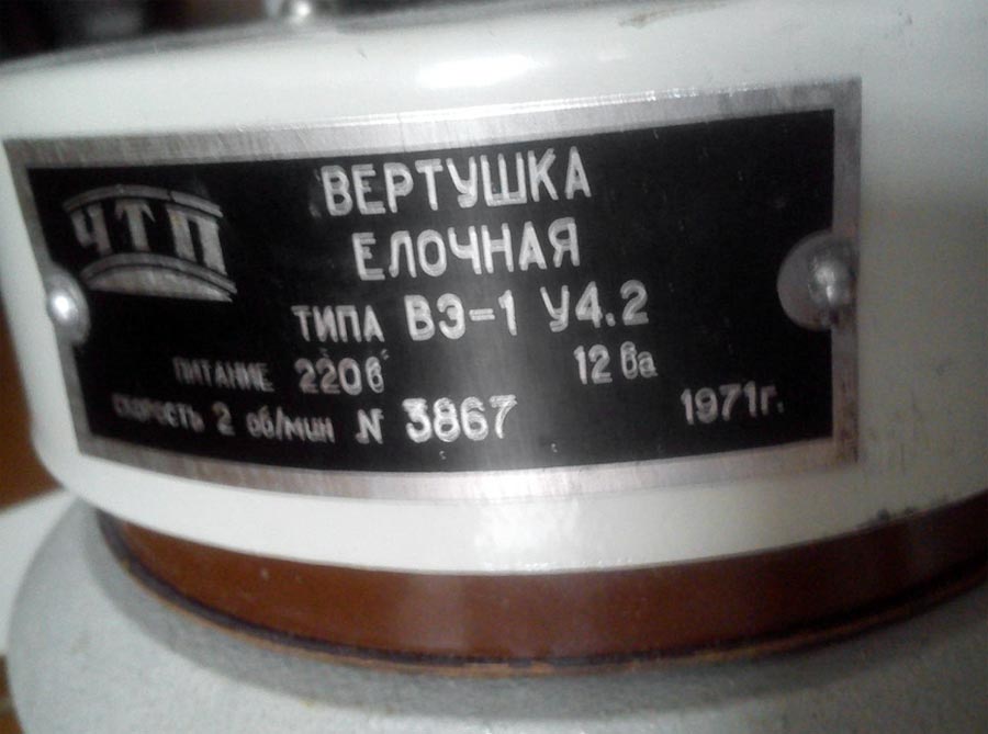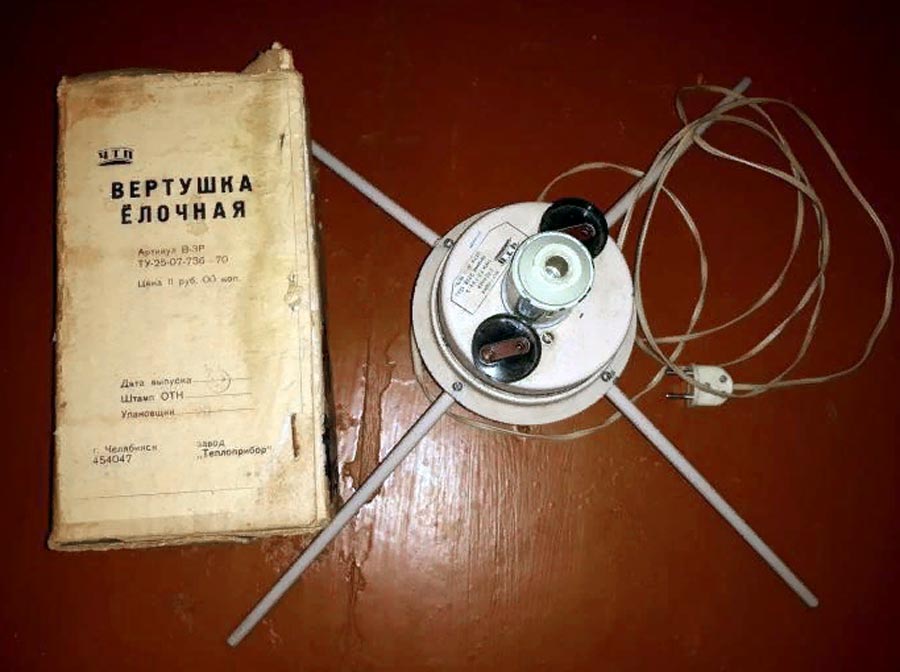 Вертушка ёлочная "ВЭ-1" с 1971 года выпускал Челябинский завод "Теплоприбор". Предназначена для вращения новогодней ёлки. Возможно с 1975 года "ВЭ-2" получила функцию прерывания свечения гирлянд.