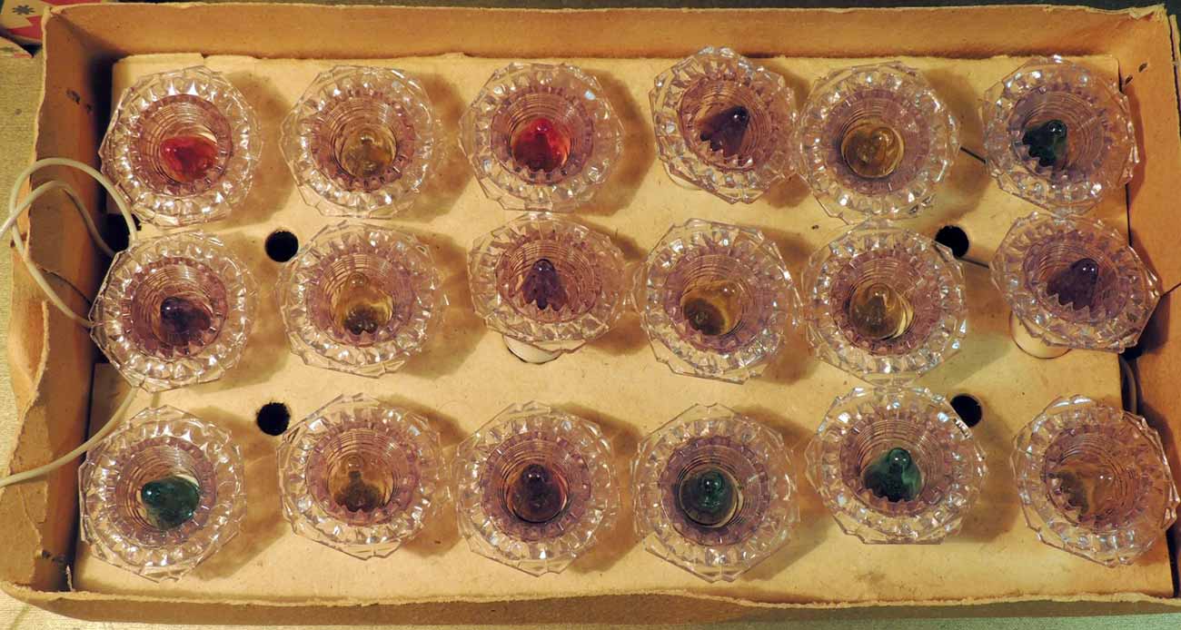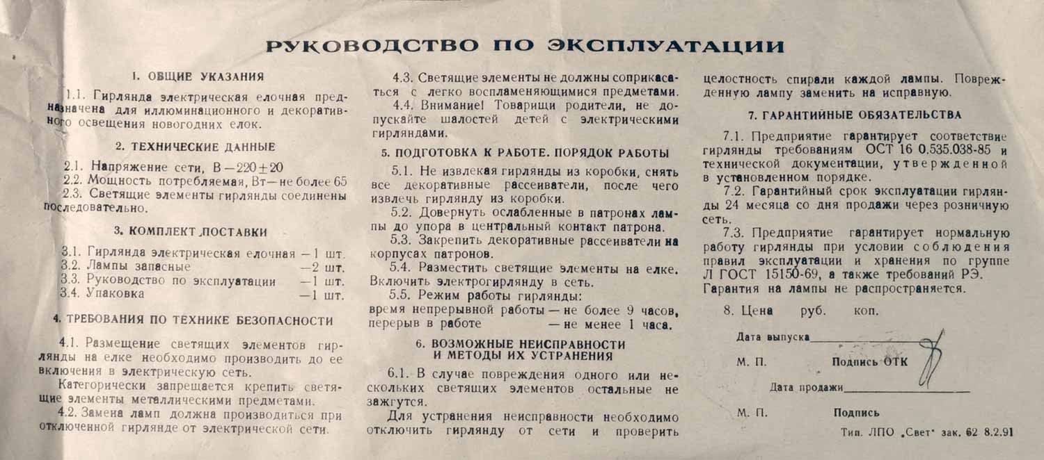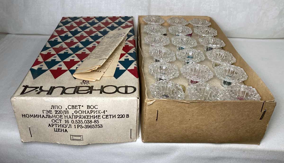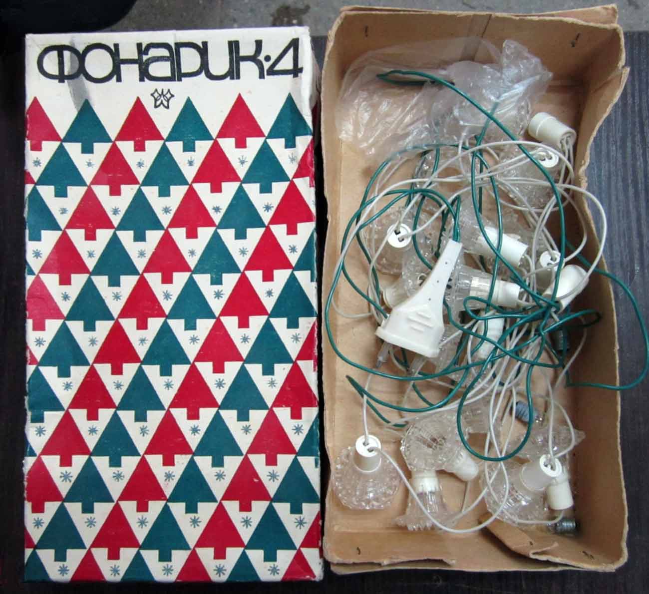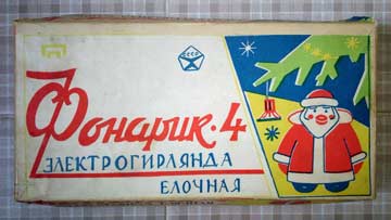 Электрогирлянда ёлочная "Фонарик-4" выпускалась возможно с 1980 по 1992 годы несколькими предприятиями страны. 220 В. 18 ламп. 4 цвета.