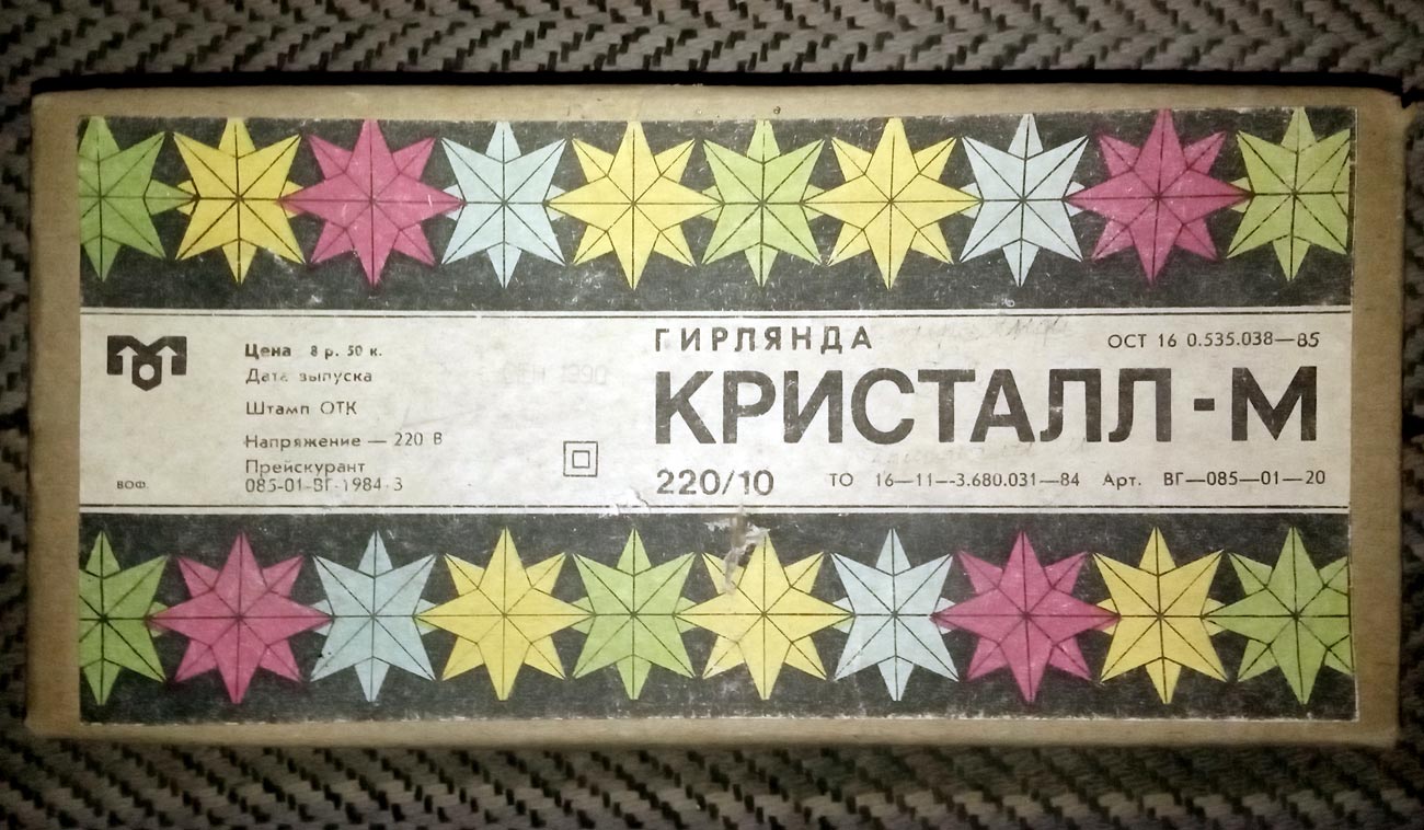 Ёлочная гирлянда "Кристалл-М" выпускалась возможно с 1990 года одним из заводов города Волгограда. Фотографии гирлянды Ильи Кузнецова, г. Волгоград.