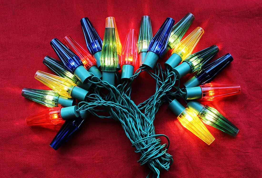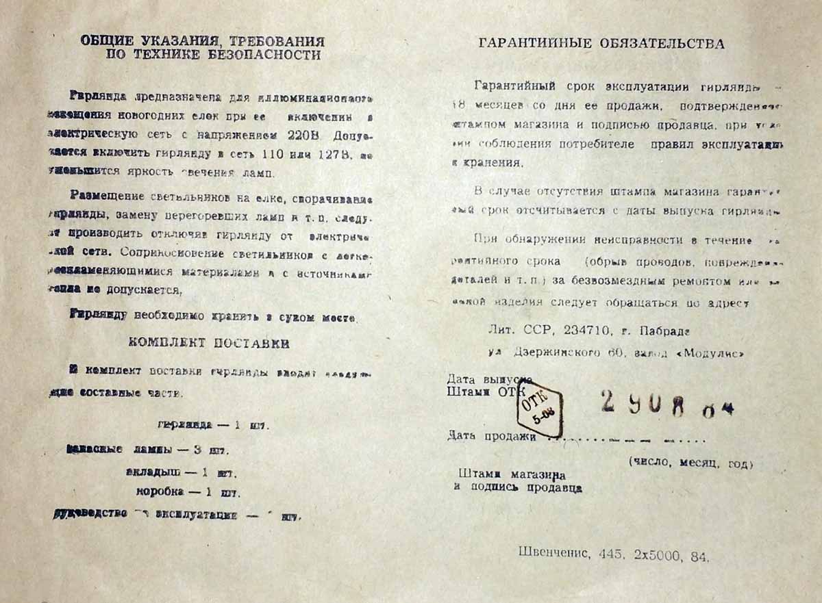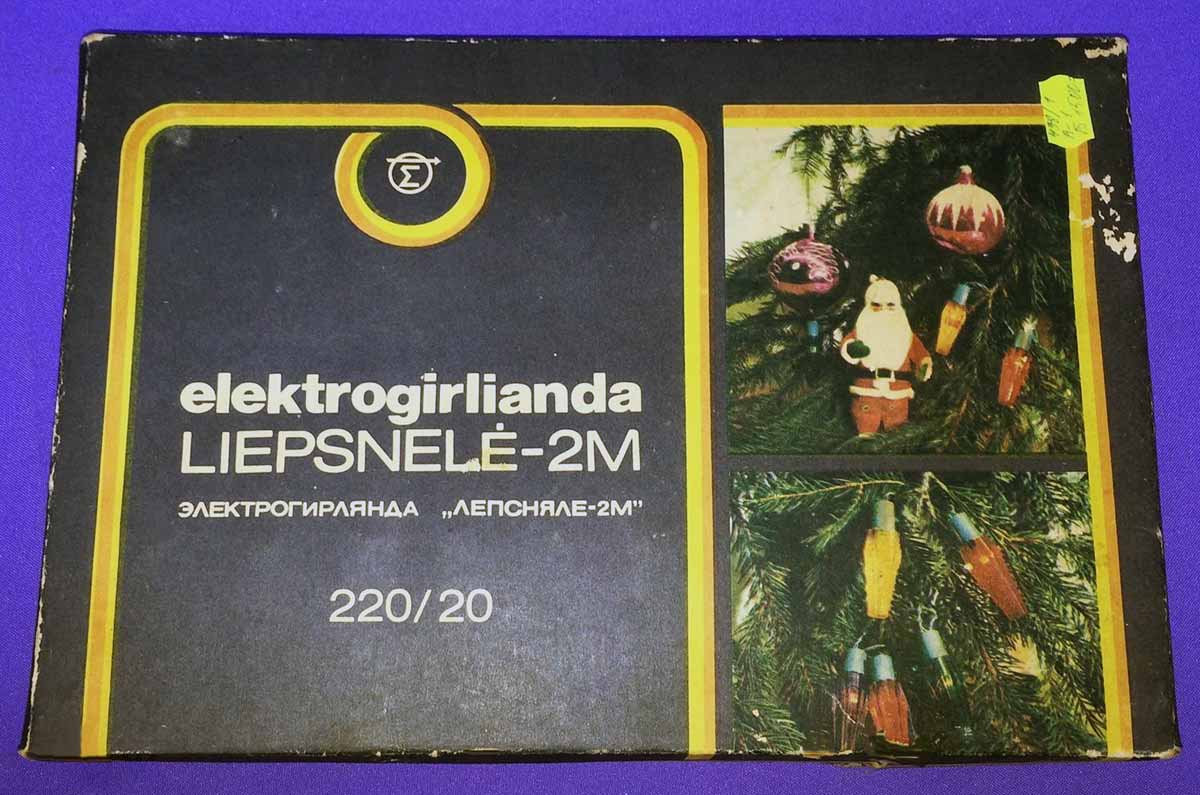 Ёлочная гирлянда "Лепсняле-2М" возможно с 1984 года выпускал Пабрадский завод "Модулис", Литва. Питание 220 В. Потребляемая мощность 30 Вт. 4-х цветная. 20 ламп Е13,5 х 0,16. Цена 6 рублей 40 копеек.