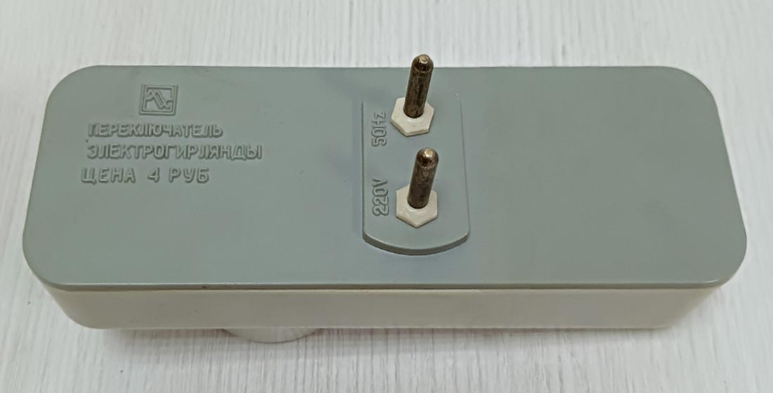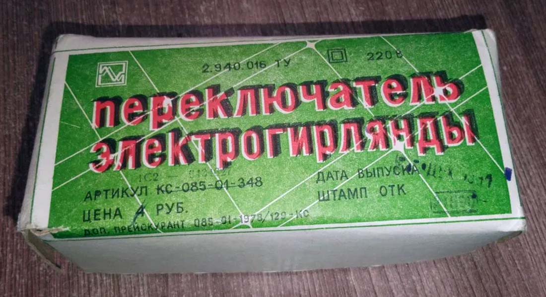 Переключатель электрогирлянды выпускался предположительно с 1979 года Курским заводом "Маяк". Предназначен для включения и выключения одной гирлянды с частотой 0,2...20 Гц.