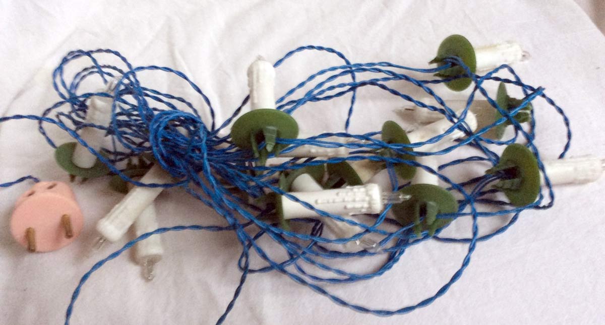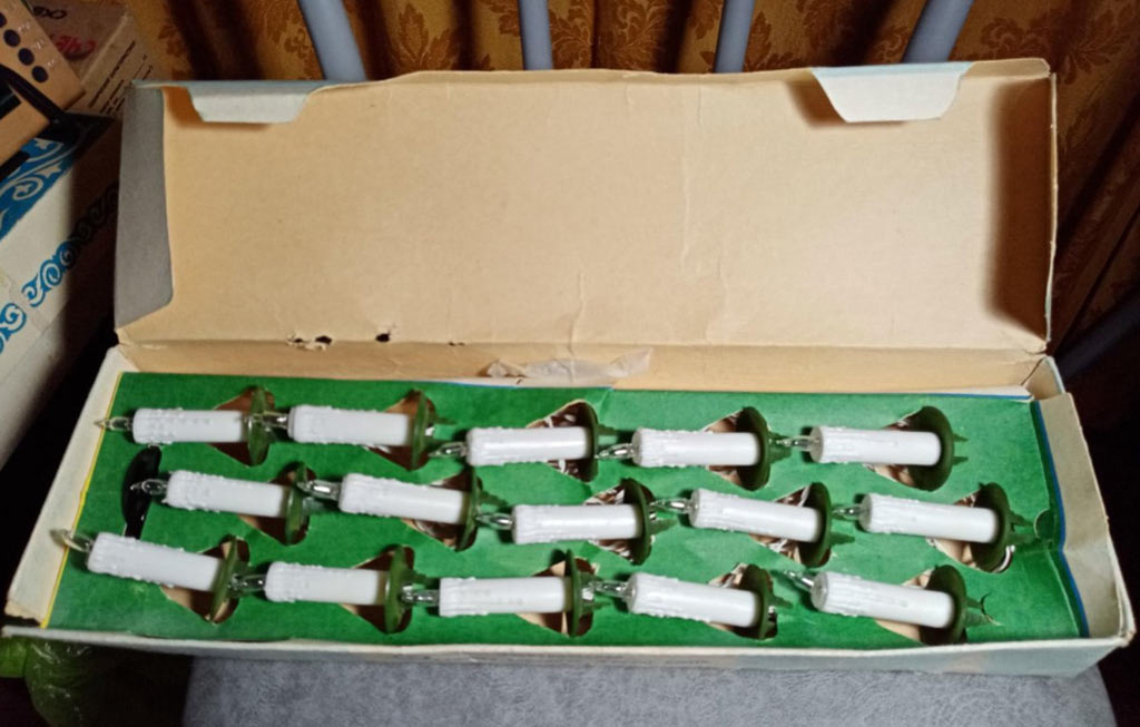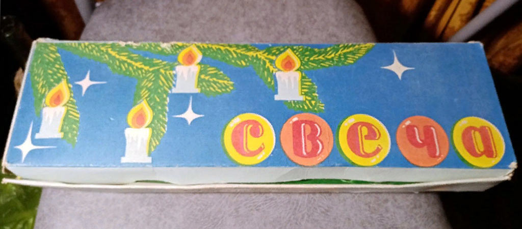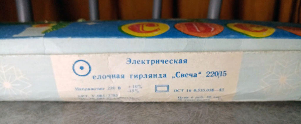 Электрическая ёлочная гирлянда "Свеча" возможно с 1986 года выпускал завод им. 60-летия Октября, город Ровно. Питание 220 В. 15 ламп.