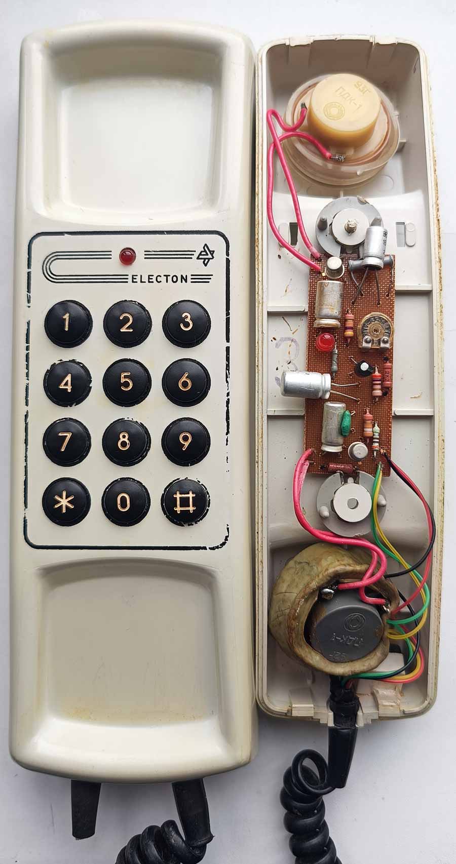 Телефонный аппарат "Electon-201" производился возможно с 1993 года в республике Крым. Настольно-настенный ТА для работы в сетях АТС. Фото Ильи Ковалёва, Симферополь.