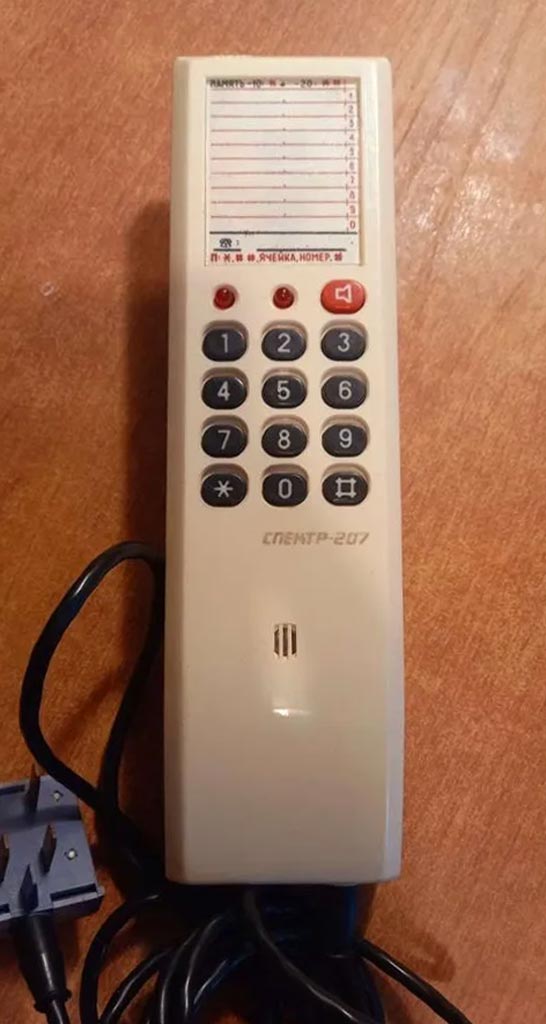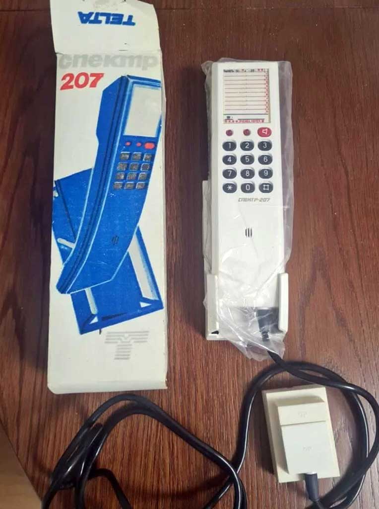 Аппарат телефонный моноблочный настольно-настенный "Спектр-207" выпускался предположительно с 1991 года Тульским ОАО "Октава" и Пермским телефонным заводом "Telta".