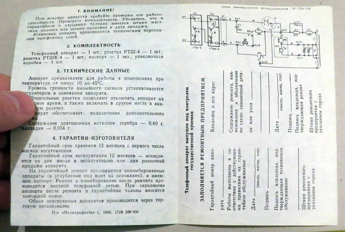 аппарата "ТА-72М" в справочнике "Телефонные аппараты и таксофоны" И.М.Губенко.