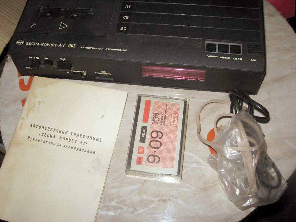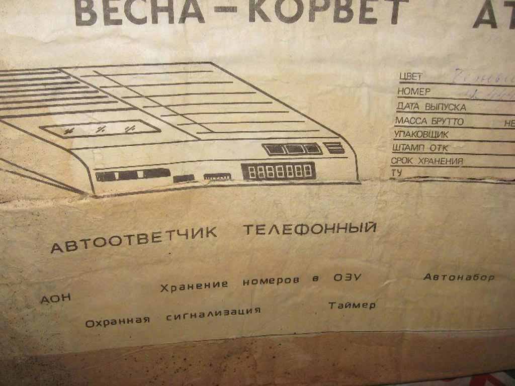 Автоответчик телефонный "Весна-Корвет АТ 002" с 1992 года выпускало Запорожское ПО "Искра". Это определитель номера, охрана помещения, хранение номеров в ОЗУ, автоматический набор, часы, таймер.