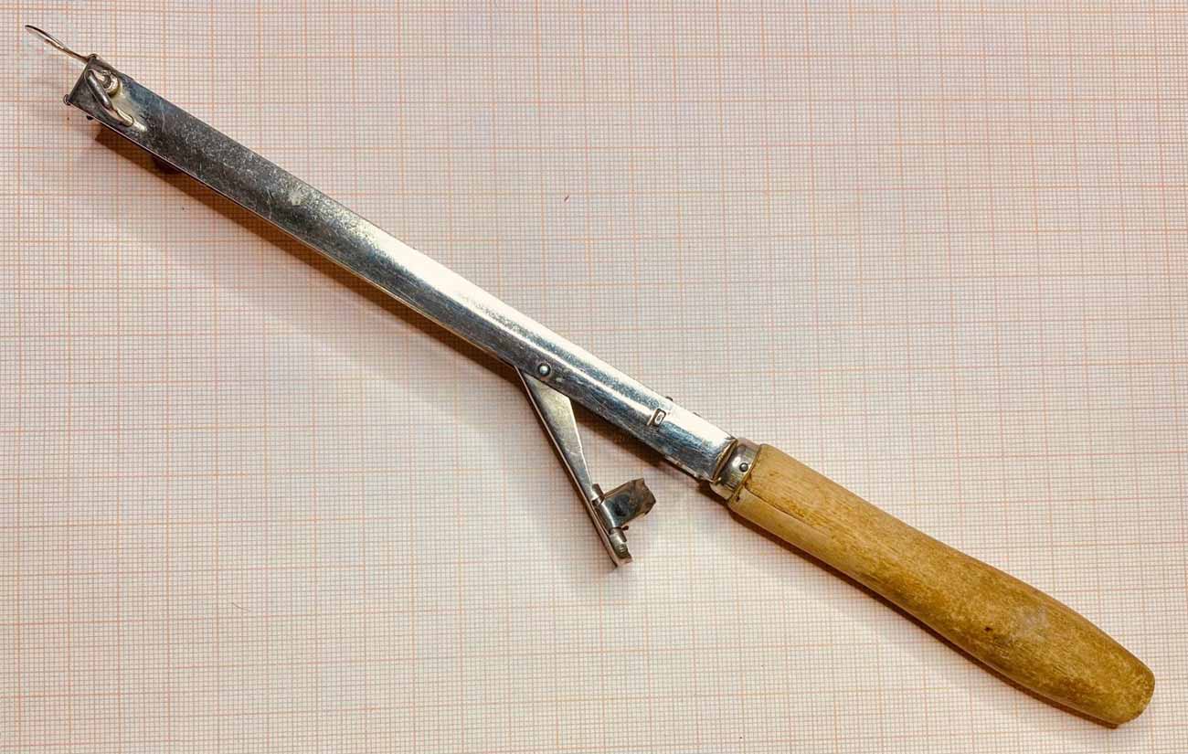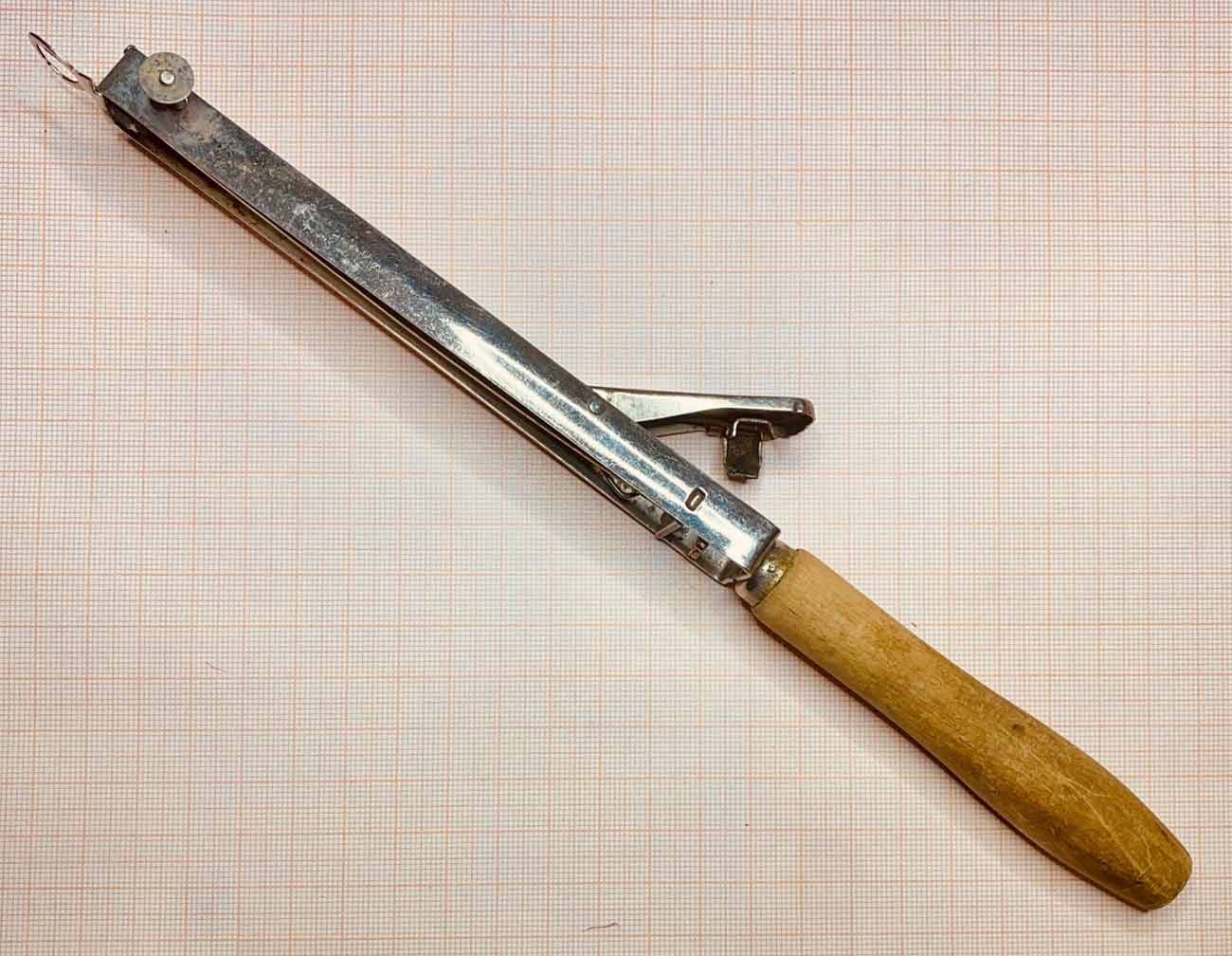 Зажигалка кремниевая "Ленинград" выпускалась возможно с 1930 года в Ленинграде. Зажигалка предназначена для поджига газа в конфорках бытовых газовых приборов. Длина зажигалки 27 см. Вес около 65 гр.