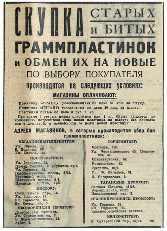 Великой Отечественной войны, производство патефонных пластинок прекратилось.