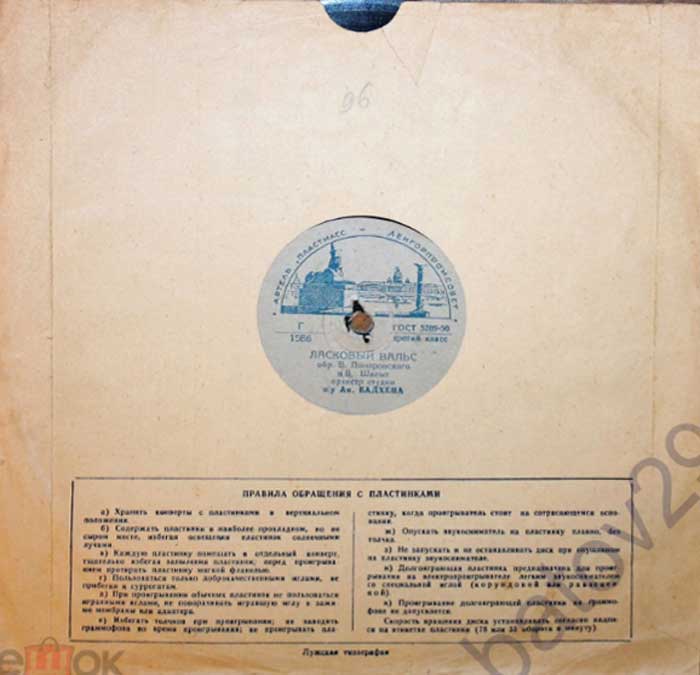 диаметр грампластинки 250 мм. Грампластинки упаковывались в простые и художественные
