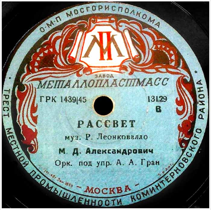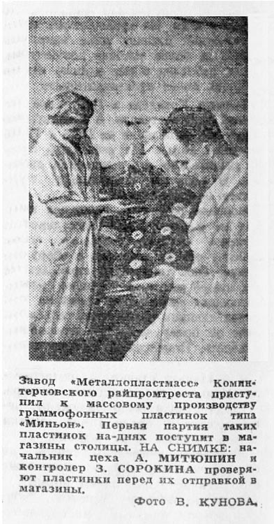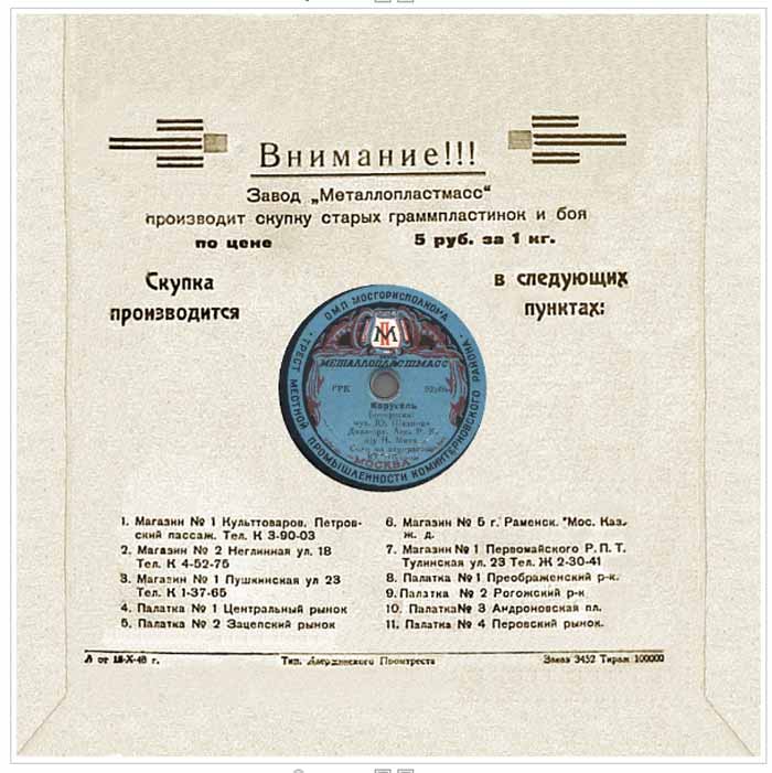 ОМП Мосгорисполкома (ОМП - Отдел Местной Промышленности). Размер грампластинки