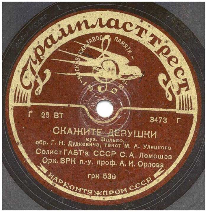 со скоростью проигрывания 78 об/мин. выпускались на Московском заводе «Памяти