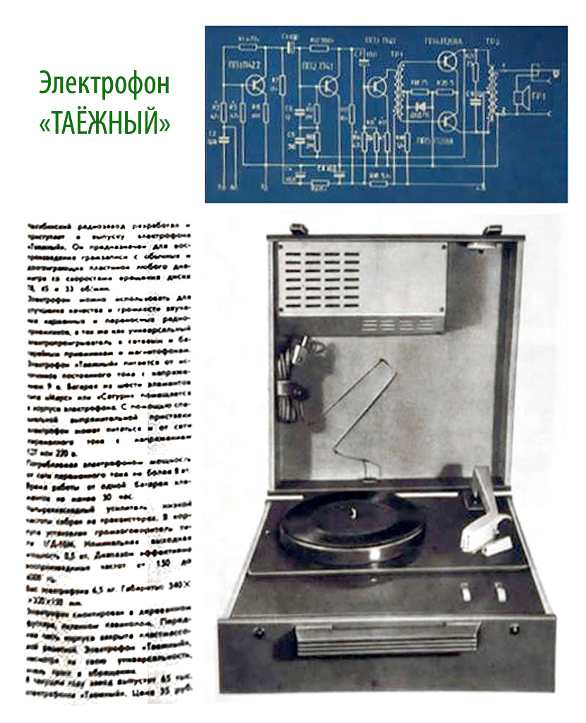 транзисторный электрофон "Таёжный" выпускался с 1965 года Челябинским радиозаводом.