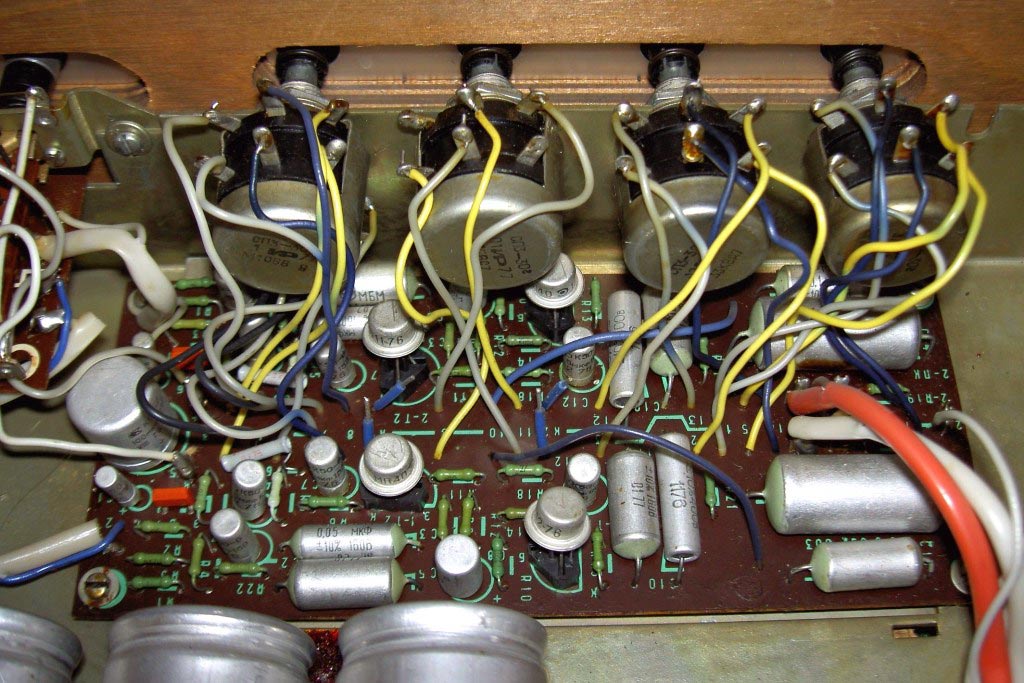 гнёзда для подключения радиосети, магнитофона, приёмника и стереотелефонов.