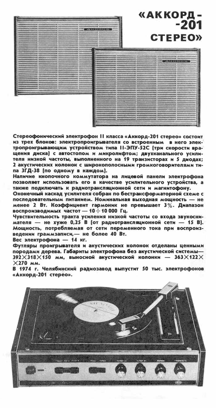 оформления, а так же различными ЭПУ. Возможно такой же электрофон "Аккорд-201-стерео"