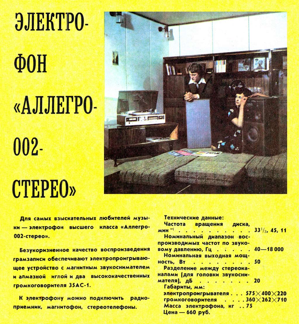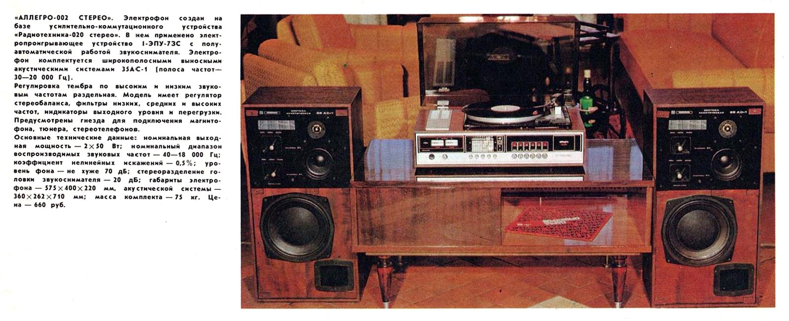 электрофон "Аллегро-002-стерео" с 1976 года выпускал "Рижский электромеханический