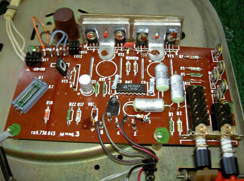 на скорости вращения диска 33 и 45 об/мин. В электрофоне применено электропроигрывающее