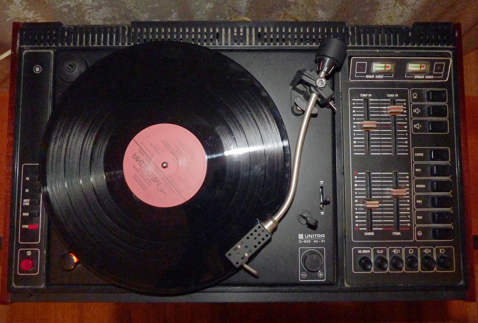грампластинок и состоит из 2-х скоростного ЭПУ производства ПНР, УНЧ и