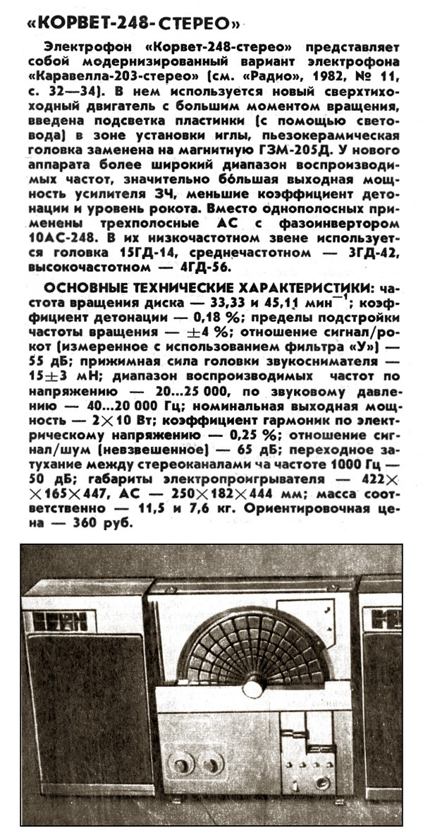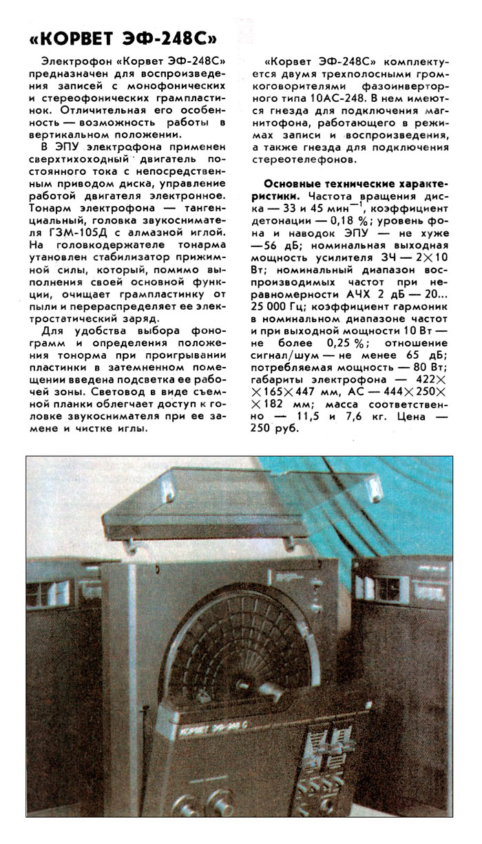 по эксплуатации электрофона "Корвет ЭФ-248-стерео". Фото