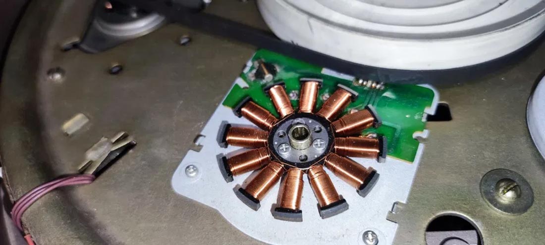Имеется фонокорректор. Скорости ЭПУ 33 и 45 об/мин. Два двигателя с общим