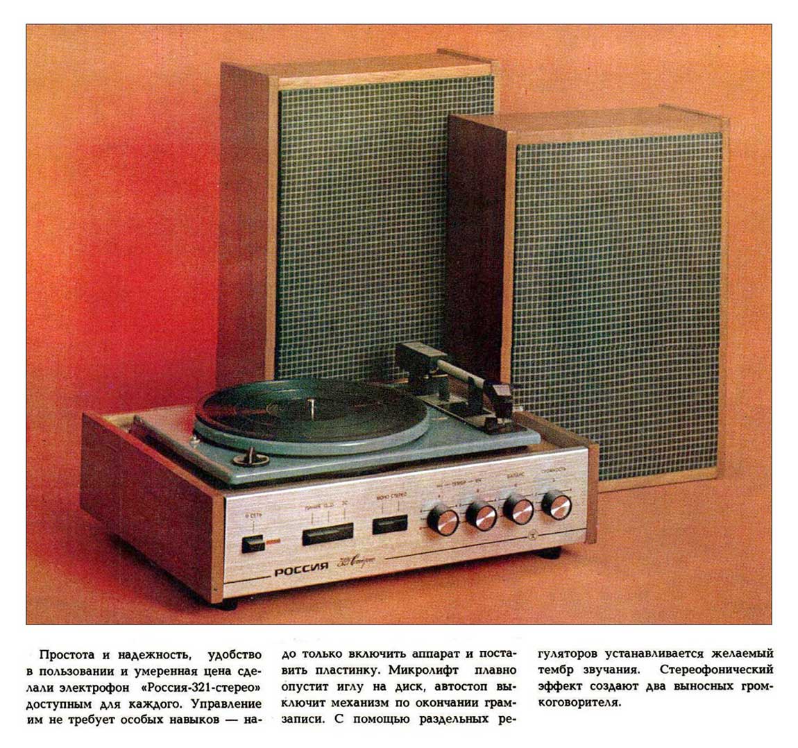 до 80 рублей. Электрофон "Россия-321-стерео" обеспечивает воспроизведение