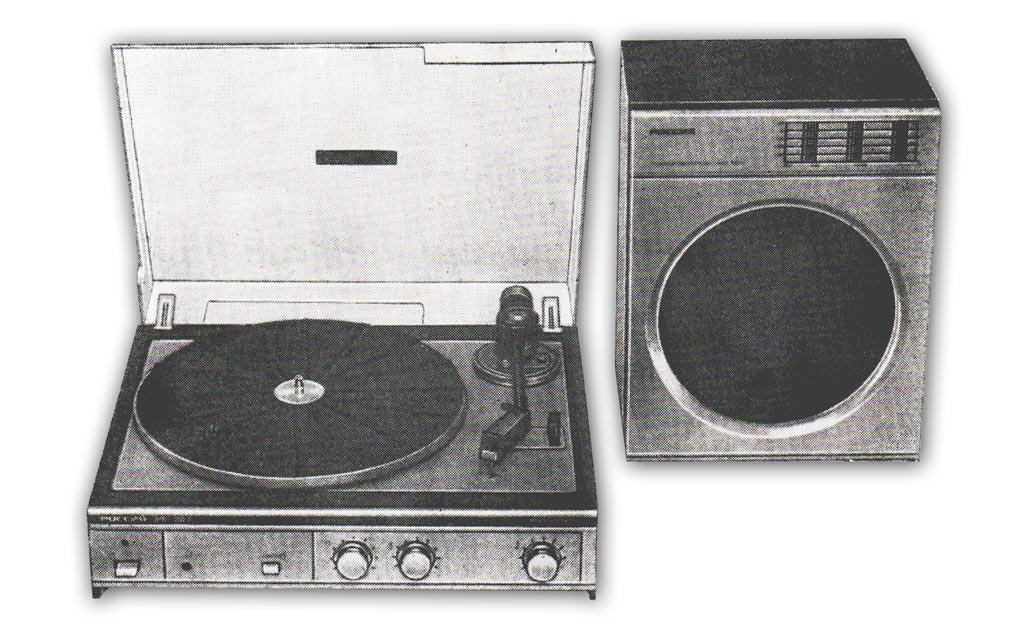 более новой элементной базой, с применением микросхем в усилителе ЗЧ, электропроигрывающим