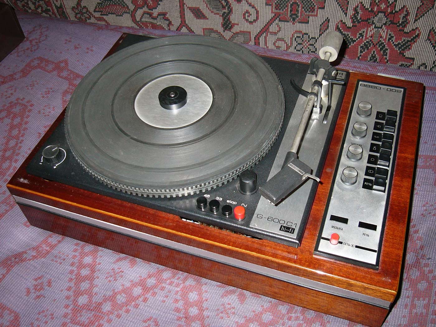 всех форматов на скорости вращения диска 33 и 45 об/мин. В комплект электрофона