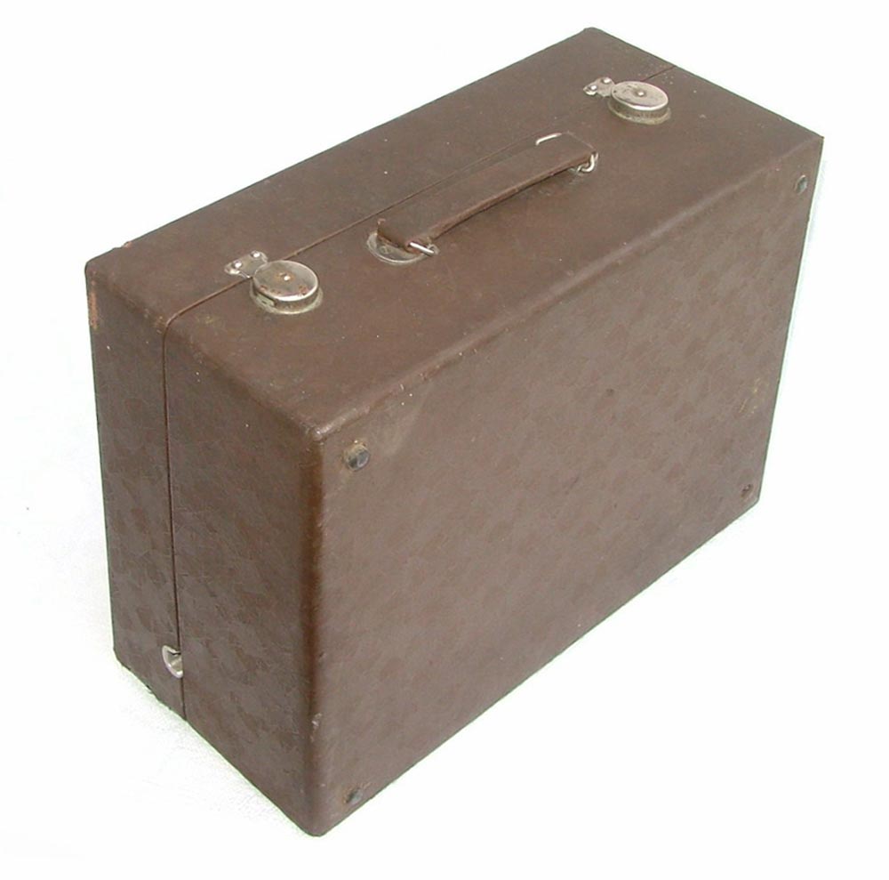 отделанном дермантином малогабаритном переносном футляре.