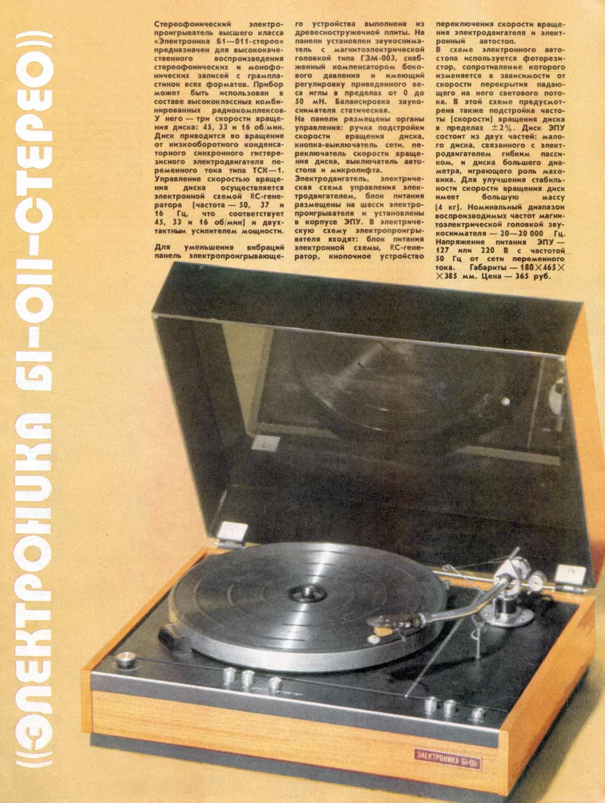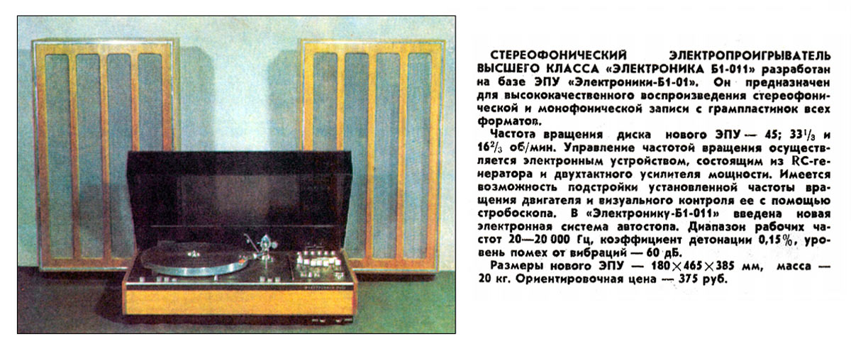 электропроигрыватель высшего класса "Электроника Б1-011" с 1976 года выпускал