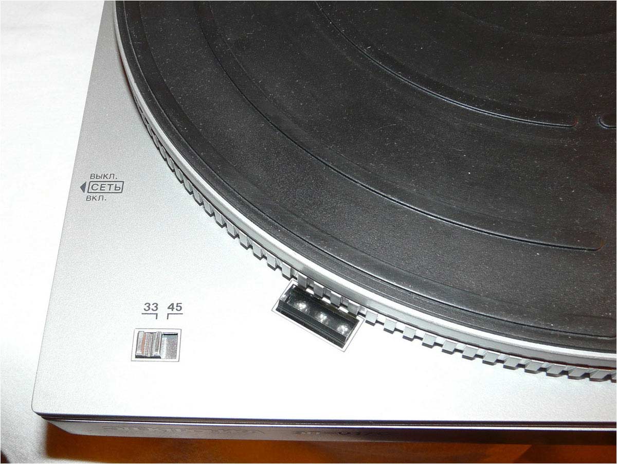 звукоснимателем и всеми режимами работ. Скоростей вращения диска две 33,33