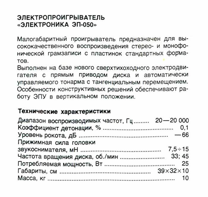 ЭП служит для высококачественного воспроизведения грампластинок стандартных