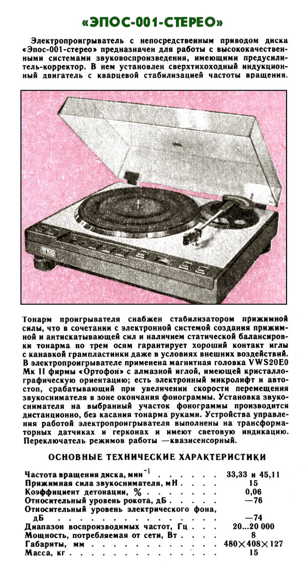 "Эпос-001-стерео" с 1982 года выпускал Московский опытный завод НИИ Дальней